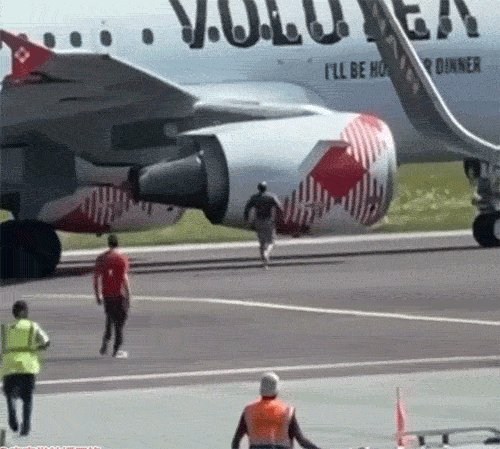 意大利米兰,这个人闯进了机场跑道,被安保人员发现后就开始跑,然后直接跳进一个飞机引擎里,一下被扇叶送走