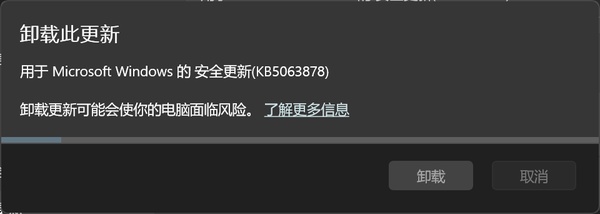 可以在 Windows更新 / 更新历史纪录 / 卸载更新 里找到 KB5063878 并卸载它