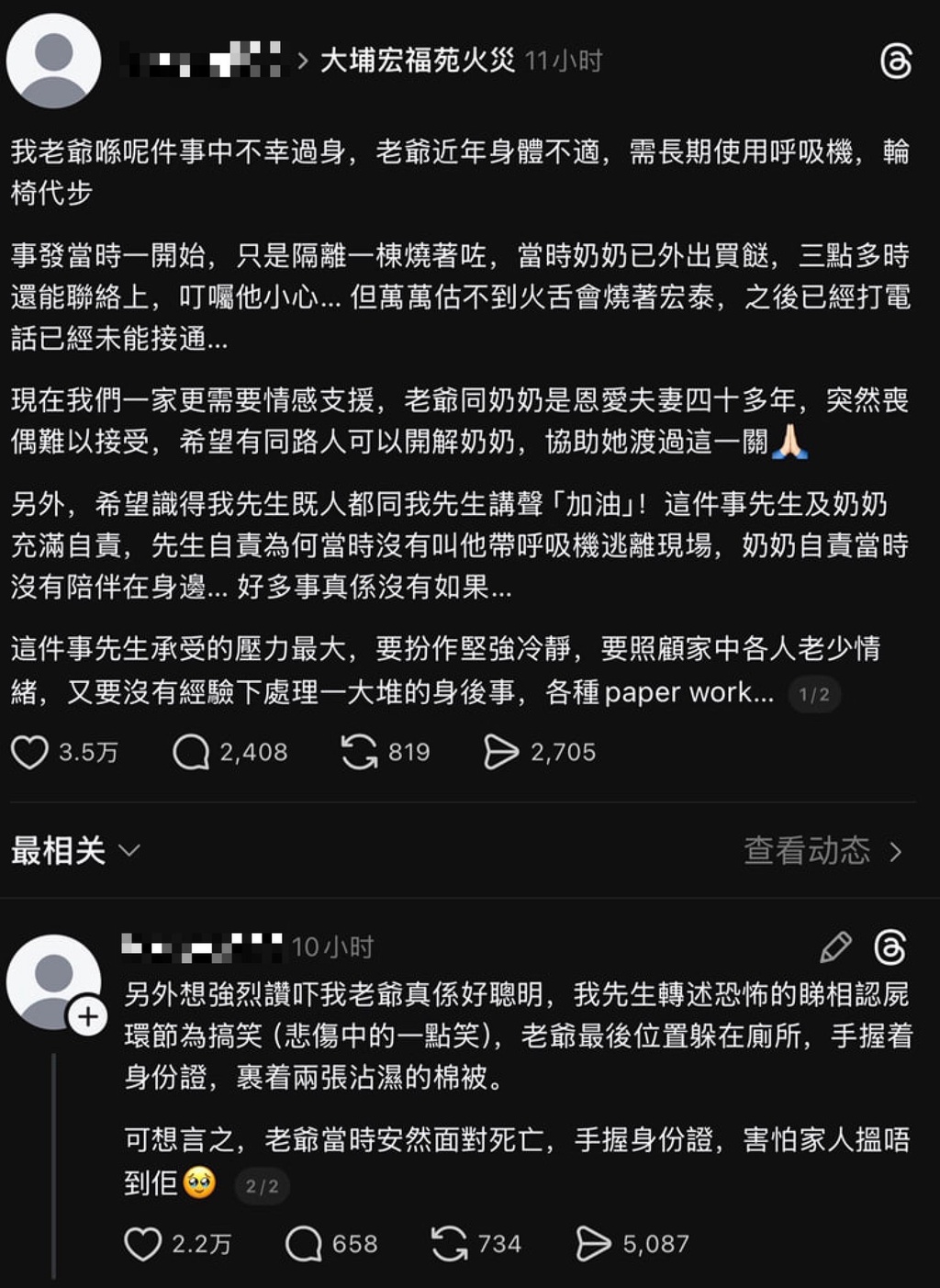最后一句,“老爷当时安然面对死亡,手握身份证,害怕家人找不到他。”
