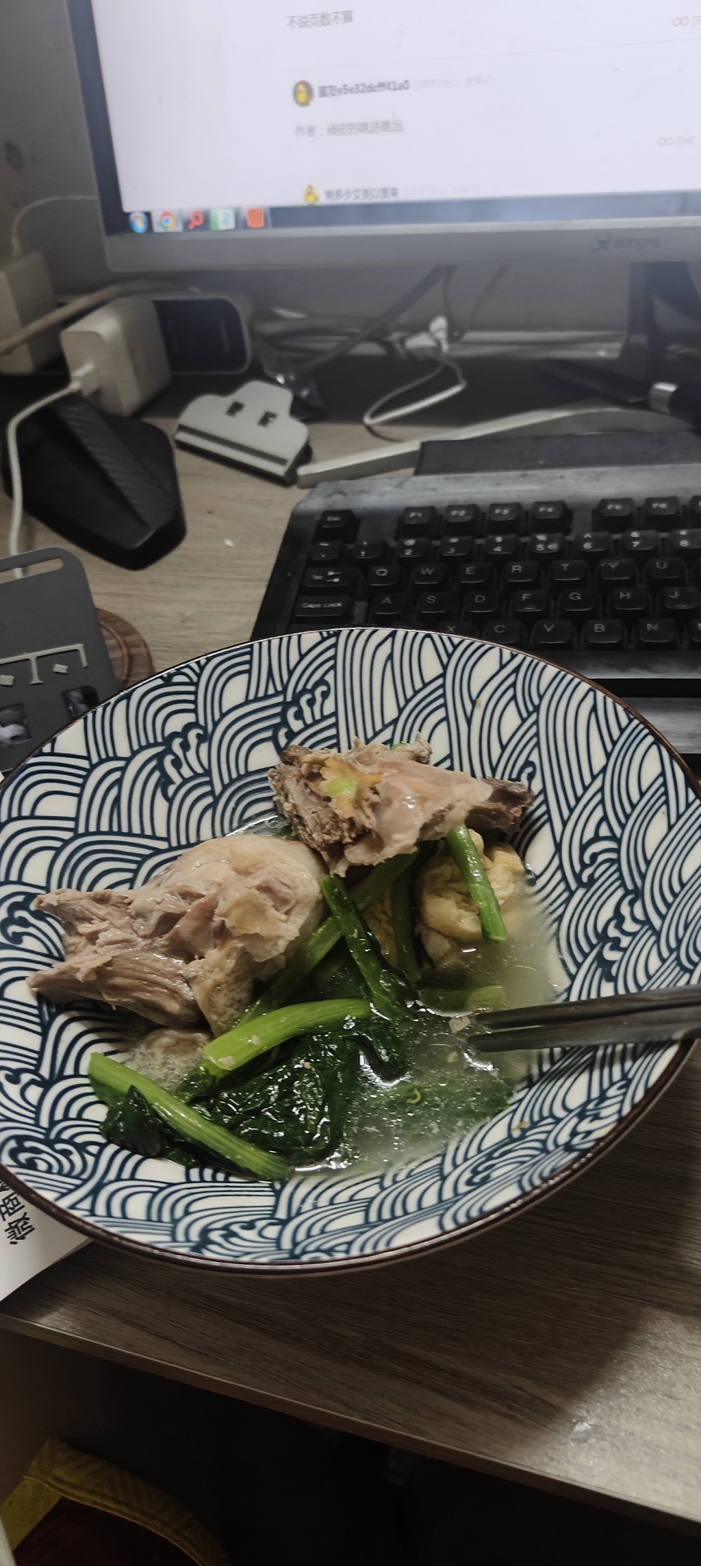 忘了买菜了,没有青菜吃不下饭,阳台种的菜第二次收获,真是菜有菜味,太嫩了,刀切上去嘎吱嘎吱响,放肉汤了里闷一分钟就出锅,好吃