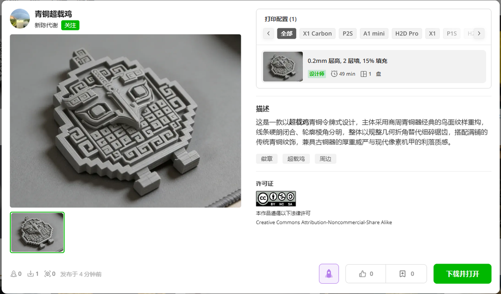 已经上架拓竹,打印即可
