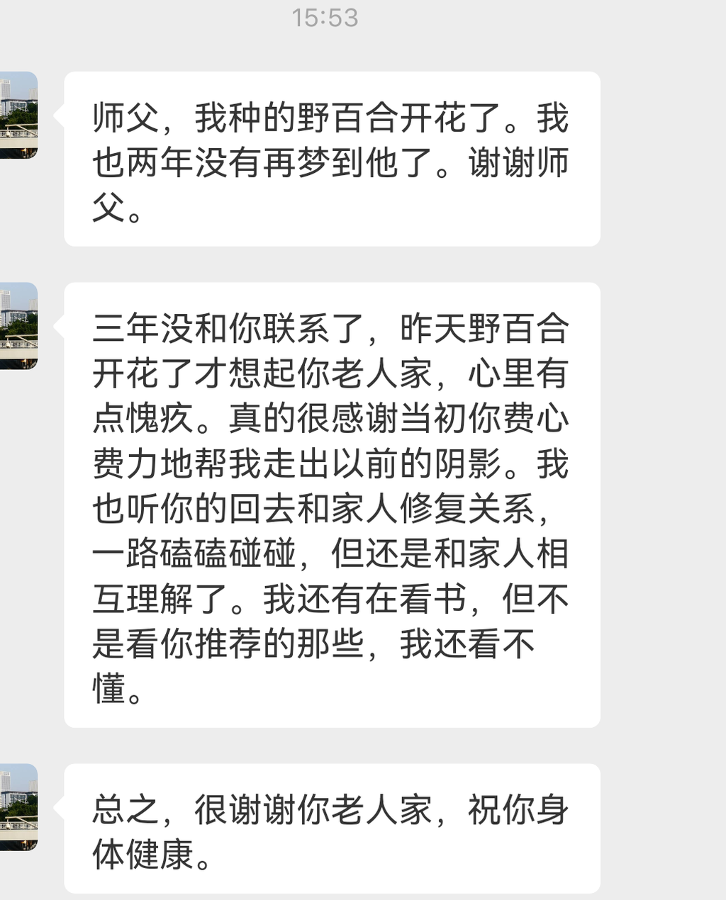 我觉得我和他们最好的关系形式,是问有所应,但随着他们的伤痛和不堪,一起淡化在他们的过去里。