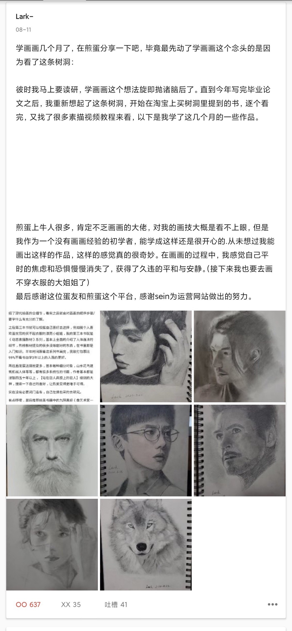 2024年的时候在煎蛋看到这位画画画的很棒的蛋友,当时的感想是:哇哦,我也要像他一样开始画画。现在开始两年过去了,还是没有踏出第一步